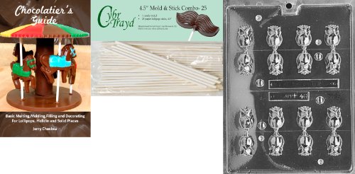 Cybrtrayd 'Small 3D Rose Lolly' Fruits and Vegetables Chocolate Candy Mold with 25 4.5-Inch Lollipop Sticks and Chocolatier's Guide