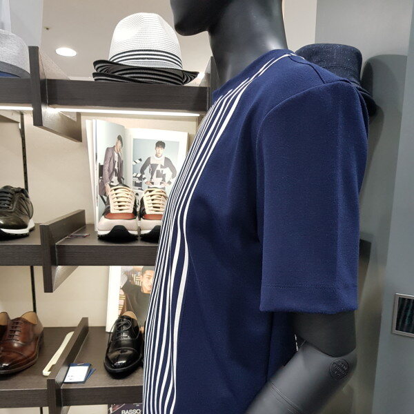 바쏘옴므 2018 S/S 네이비 세로 스트라이프라운드반팔티셔츠2018 S/S 신상품으로 면혼방 소재로착용감이 좋으며 신축성이 좋은멋스러운 네이비바탕에 세로로스트라이프를 포인트로 주어 옆트임도 있어서편안하게 입으실수 있습니다.깔끔한 스타일로 캐쥬얼이나 슬랙스바지나 청바지에도 무난하게 코디가 가능한 IT아이탬 캐쥬얼 반팔 티셔츠입니다~지금 주문을 서두르세요^^