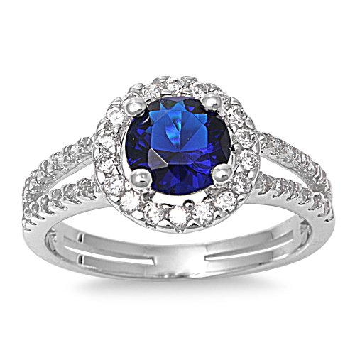 -. Title : Sterling Silver Simulated Blue Sapphire Halo Ring (Size 5 - 10)