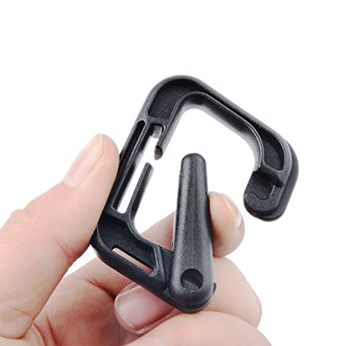 -. Feature : Package Include: Pack of 6 Carabiner D-Ring / High Quality Plastic D-Ring can attaches to Belt or Vest/MOLLE, textured grip for use with easy Break-Away Feature. / Locking Snap Hook Latch design of this hanging hook comes with a detent to maintain an open position if needed and, while strong enough to carry equipment. / Tactical Strap Management Tool Web Dominator - A handy MOLLE Clip for joining two bags or pouches together especially with MOLLE webbing / For connecting your tactical accessories that require quick and easy one-handed access. Eg: Connect a pouch/keyring holders to your belt, bags, vests.
