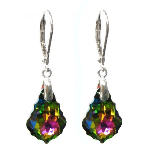 -. Title : Queenberry Vitrial Medium Swarovski Elements Crystal Sterling Silver Leverback Dangle Earrings