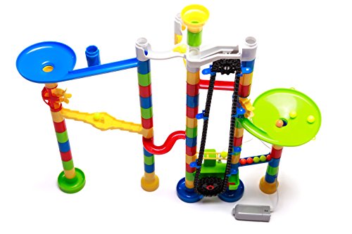 -. Feature : Includes 160 pieces and 20 marbles / Features a motor driven elevator / 16.5" tall when fully assembled / Brightly colored pieces can be built into a wide variety of designs to race marbles to the bottom / Build guide included