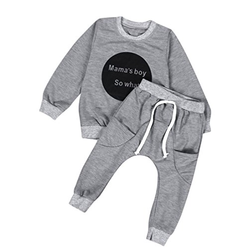 핫.yang-yi유아용 어린이용 베이비 소녀 사내 아이 귀여운 의상복 긴 소매T셔츠톱스+팬츠 120cm/36-48M 블루