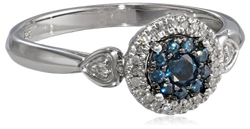-. Binding : Jewelry -. Brand : Amazon Collection -. Color : Silver -. Department : womens -. Feature : Polished 10k white gold ring with heart-shaped tapered band featuring blue diamond cluster centerpiece with pave-set white diamond halo / All our diamond suppliers confirm that they comply with the Kimberley Process to ensure that their diamonds are conflict free. / Imported -. Label : JPI -. Manufacturer : JPI -. Model : 77765RD-060-Parent -. MPN : 77765RD-060-Parent -. PartNumber : 77765RD-060-Parent -. ProductGroup : Jewelry -. ProductTypeName : FINERING -. Publisher : JPI -. Studio : JPI -. Title : 10k White Gold Blue and White Diamond Cluster Heart Ring (1/4 cttw, I-J Color, I2-I3 Clarity)