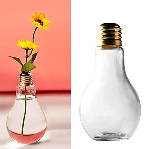 Kangkang@ 400ml Light Bulb Glass Beverage Tea Water Drink Bottle Jug With Plastic Sealing Cap For Home Coffee Shop Decor Flower Vase Idea Gift