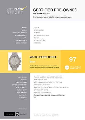 -. Feature : Omega Speedmaster 32113000 with 7.5 inches band, stainless-steel bezel and silver dial / Authenticated by WatchFacts. Grade Rating: 97 / Condition: Mint / Comes with manufacturer's papers offered with this watch / Automatic-self-wind movement / Watch year: 2014