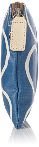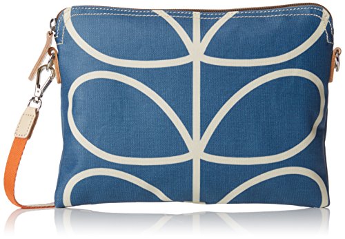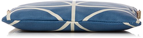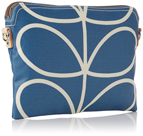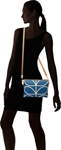 Matt laminated shoulder bag in the 'giant linear stem' print with leather trims and double sided webbing handles and contrast colored zip closure. Inside details include navy linear stem jacquard lining, small leather logo card holder pocket small zip pocket, elasticated key chain and mobile pocket. Silver colored hardware. Handles measure 45.5 cm from top edge of the bag.