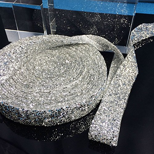 Yalulu Clear Silver Crystal Rhinestone Wedding Banding Ribbon,3cm Width,Fancy Bridal Dress Belt Trim,Wedding Cake Banding