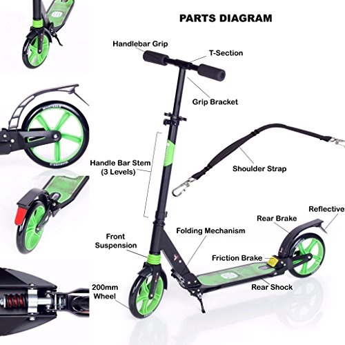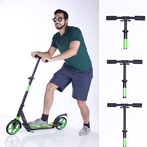 "The safe and sturdy aluminium foldable scooter has become a VERY convenient ride to get to places 3 TIMES quicker than walking. It only requires just a few scoots by your shoe and you'll be swiftly gliding through any hard surface.The resilient aluminium material helps it withstand years of use. It's foldable capability alows for a compact way to transport the scooter in many ways, such as a bag or by hand. As you can handle it pretty everywhere such as in plane, train, or in you car, It will be the perfect friend for your daily use or during week-end !Feature