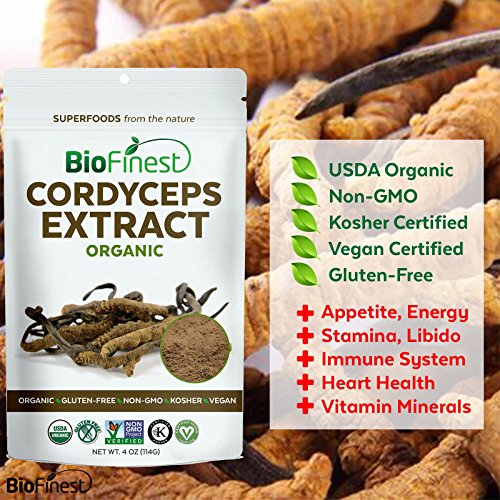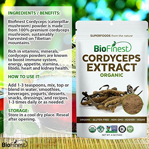 -. Title : Biofinest Cordyceps Sinensis Mushroom Extract Powder - 100% Freeze-Dried Superfood - USDA Organic Vegan Raw Non-GMO - Boost Stamina Immunity - For Smoothie Beverage Blend (4 oz Resealable Bag)