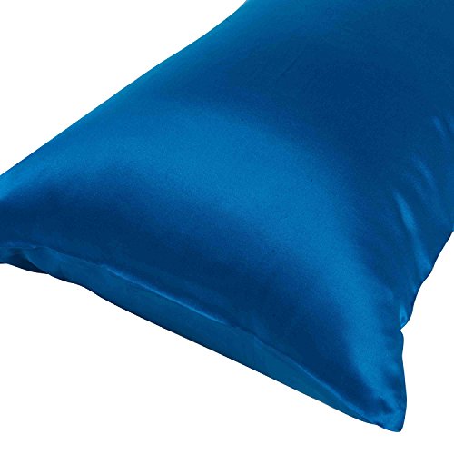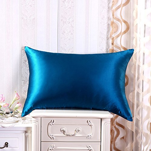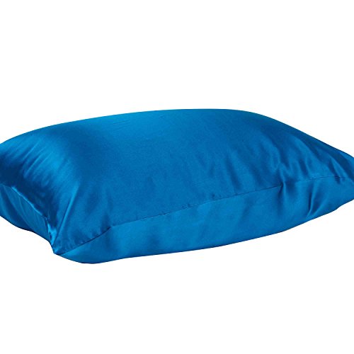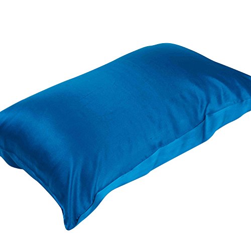 Mulberry Silk Super Soft Summer Pillow Case Satin Solid Pillow Cover/Shams with Hidden Zipper Closure,Blue,75cmx50cm