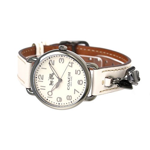 This traditional round watch with leather band gets a modern update thanks to some unexpected hardware: a signature Tea Rose charm and iconic hangtag.