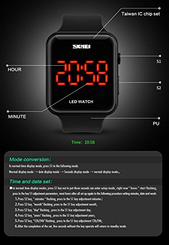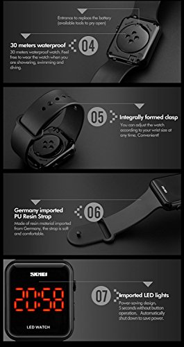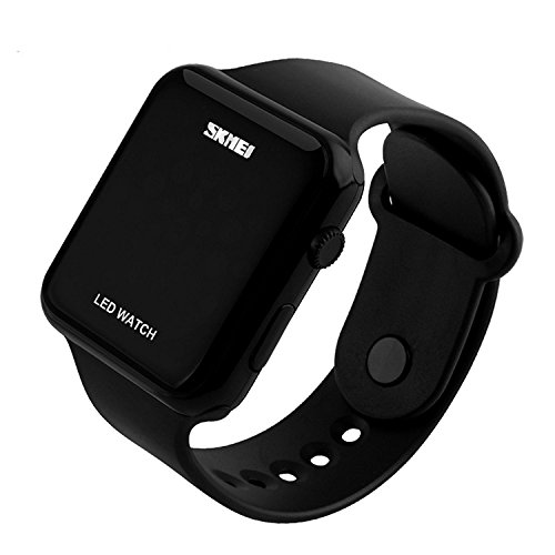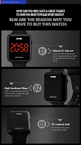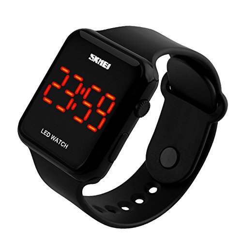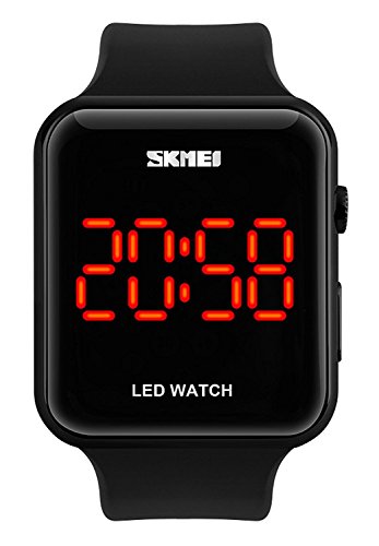 Gosasa Unisex Men's Women Simple Design Square Dial Rubber Band Digital LED Wrist Watch (Black)