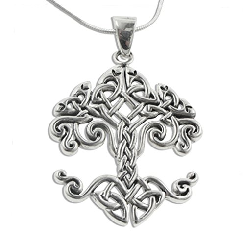 -. Title : Large Celtic Knot Tree of Life Sterling Silver Pendant 18" Chain Necklace
