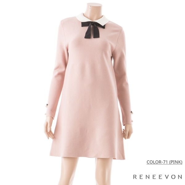 -레이온 혼방소재로 편안한 A라인 원피스입니다. -소매의 진주장식와 칼라가 여성스러운 느낌을 주며, 탈부착이 가능한 리본끈으로 귀여운 포인트를 주었습니다.