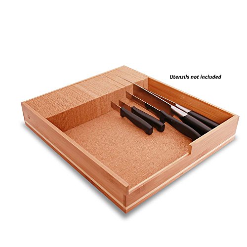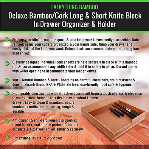 Everything Bamboo Deluxe Bamboo/Cork Long & Short Knife Block In-Drawer Organizer & Holder