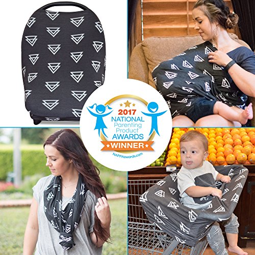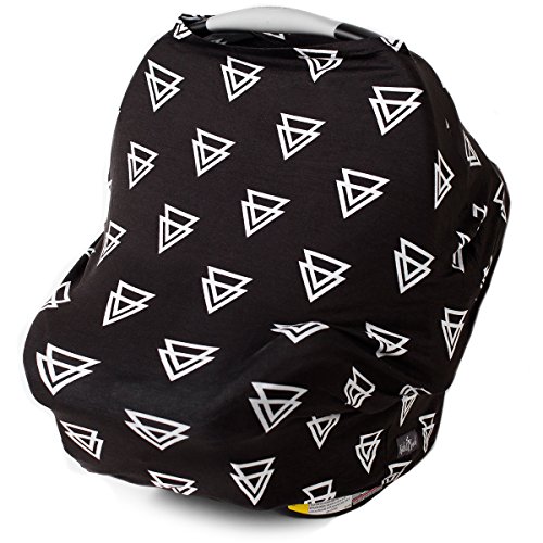 Stretchy 4-in-1 Carseat Canopy | Nursing Cover | Shopping Cart Cover | Infinity Scarf- Black Triangle Print | Best Baby Gift for Boys & Girls | Fits Most Infant Car...