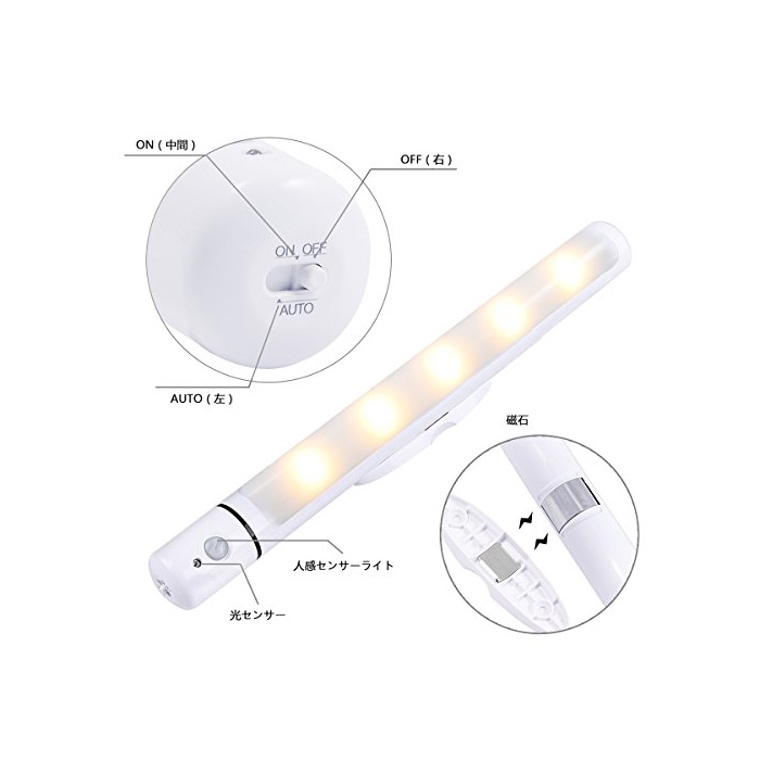★【3개의 지능 모드】항시 점등ON모드,인감센서 모드,OFF모드3종이 있습니다.실내 라이트로서 클로젯은 물론,계단 침실 복도 현관 키친 등 여러가지 장소로 설치 를 할 수 있습니다.ON으로 정전이나 재해시 시에는,회중전등으로서 사용이 성과 아웃도어로도 사용할 수 있기 때문에 대활약입니다.※단3전지6개 포함한다.