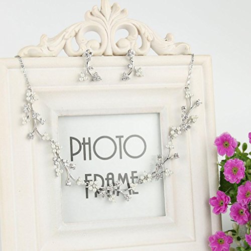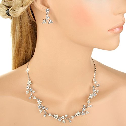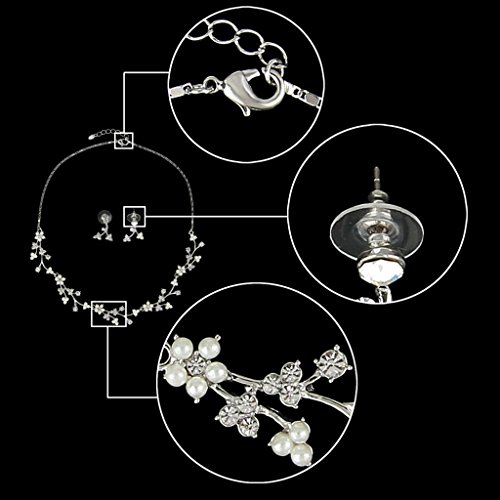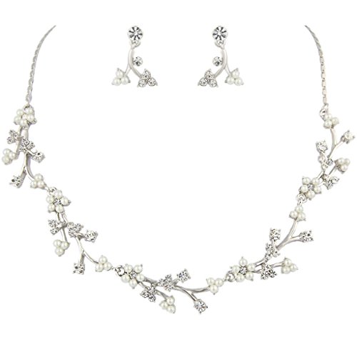 -. Title : EVER FAITH® Austrian Crystal White Simulated Pearl Bridal Floral Leaf Vine Jewelry Set Clear