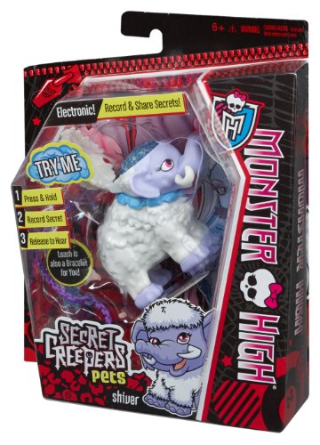 -. Binding : Toy -. Brand : Monster High -. Department : baby-girls -. EAN : 0746775299446 -. Feature : Shiver, the beast friend of Abbey Bominable, has come to life to keep your secrets! / Pop open Shiver figure's head to reveal creepy cool secret-keeping features (and a creepy cool brain) / Record secrets with leash in, and lock by removing / Leash doubles as a bracelet for the girl! / Transfer secrets between other pets (sold separately) by pressing the brain, then connecting their paws together -. IsAdultProduct : 0 -. ItemPartNumber : BDF04 -. Label : Mattel -. Manufacturer : Mattel -. Model : BDF04 -. MPN : BDF04 -. PackageQuantity : 1 -. PartNumber : BDF04 -. ProductGroup : Toy -. ProductTypeName : TOYS_AND_GAMES -. Publisher : Mattel -. Studio : Mattel -. Title : Monster High Secret Creepers Shiver Figure -. UPC : 801984046370 -. Warranty : No Warranty