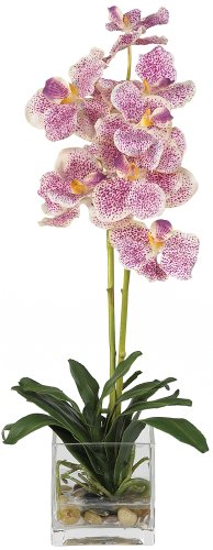 Nearly Natural 4638-PP Vanda with Glass Vase Silk Flower Arrangement, Purple