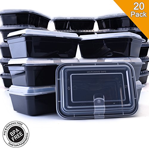 Meal Prep Containers 1 Compartment, BPA Free Take Out Food Storage Containers with lids - Leak Resistant, Stackable, Portable, Microwave, Freezer & Dishwasher Safe, 26 oz (20PACK)