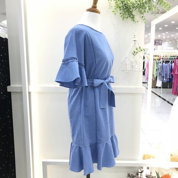 전체적으로 루즈한 핏의 원피스에 벨트로 허리라인을 잡아주는 멋스러운 여름원피스를 소개합니다^^ 팔과 옆부분에 펀칭을 넣어 더욱 시원해보이고 허리끈을 빼고 통원피스로 입어도 예쁘고 허리라인 잡아서 셔링감을 주고 입어도 너무 예쁜 원피스입니다~팔과 스커트밑단에 들어간 프릴감이 규트한 느낌을 주는 상품입니다^^