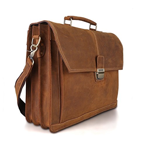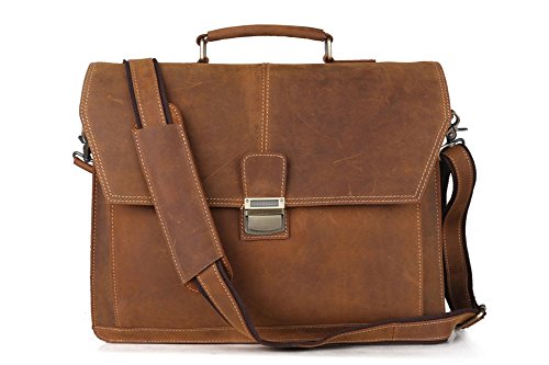 -. Title : ROCKCOW Vintage Top Leather Briefcase Messenger Shoulder Bag with Push Button