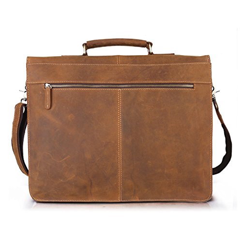 -. Feature : Material: Genuine Cow Leather / Length: 42cm; Height: 34cm; Width: 13cm; Handle Height: 6cm; Shoulder Strap(Adjustable): 120cm / Imported 15" ROCKCOW rustic look leather messenger bag / Comfortable Shoulder Strap, Solid Brass Hardware And Fabric Lining / Inside laptop sleeve, zipper pocket, one cell pocket, one wallet pocket.