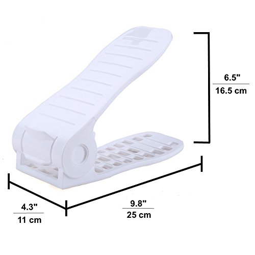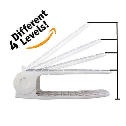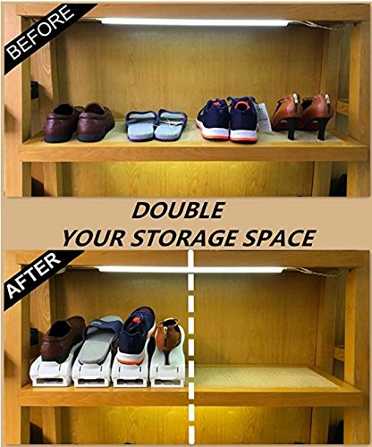 Adjustable: This versatile shoe slot has 4 adjustable levels, ideal for different types and sizes of shoes. Stack your sneakers, slippers, flats, tennis shoes and sandals in any space!