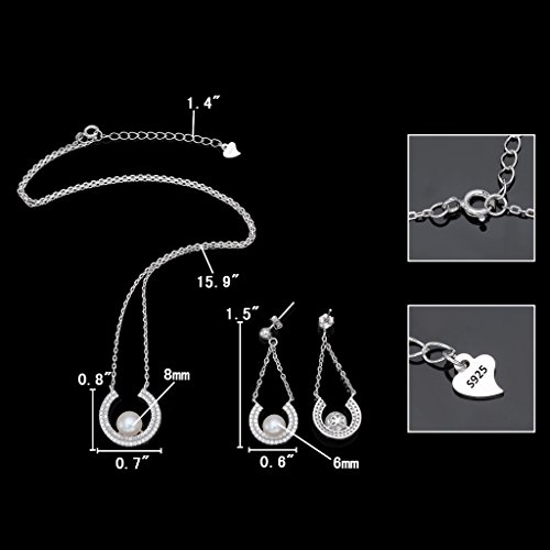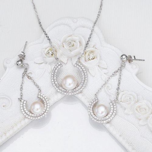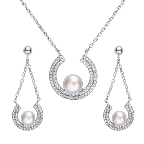 -. Title : EleQueen 925 Sterling Silver CZ Cream Freshwater Cultured Pearl Lucky Horseshoe Bridal Necklace Hook Earrings Set Clear