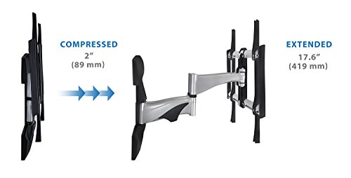 -. Binding : Wireless Phone Accessory -. Brand : Mount-It! -. Color : Silver -. EAN : 0617401054152 -. Feature : COMPATIBLE WITH MOST LCD and PLASMA TV: Fits most TV screens on the market! Recommended screen types Sony, Sharp, Vizio, LG, Westinghouse, TCL, etc. It can support a wide variety of sizes, from thirty-seven inches to seventy inch screens. VESA 200x200, 300x300, 400x200, 400x400, 600x400 (mm) / FULL MOTION TILT, EXTEND, AND SWIVEL: Articulate your TV into a more ergonomic and comfortable position for your convenience. Tilt up or down 15 degrees each way for an enhanced image quality. Pan left or right 120 degrees for optimized viewing angles. For maximum compatibility our mount extends from a low 2.13" profile to a full 17.64" / DESIGNED FOR ELEGANCE: Elegant design and structure keeps this mount looking sleek and modern. Mounting bracket comes with plastic black coverings to hide the mounting screws for a natural appearance in any home or business. Comes with a silver and black color scheme / HEAVY-DUTY CONSTRUCTION: Built from hard and heavy aluminum steel alloys that combine for a solid main structure. VESA bracket and mounting arms can support 99 LBS (45 Kg) of weight. / INSTALLATION IS EASY: Within minutes have the mount of your dreams up on the wall. It was built to keep your life simple. Install on a double stud for optimal compatible range of TV placement. We provide all of the necessary hardware and instructions necessary to assemble your wall mounting arm -. Label : Mount-It! -. Manufacturer : Mount-It! -. Model : MI-9464 -. MPN : MI-372B -. PackageQuantity : 1 -. PartNumber : MI-372B -. ProductGroup : Wireless -. ProductTypeName : WIRELESS_ACCESSORY -. Publisher : Mount-It! -. Studio : Mount-It! -. Title : Mount-It! MI-372B || TV Wall Mount Articulating Extending Tilting Swiveling for Sony Sharp Insignia Vizio Element Westinghouse TCL LG 37 39 40 42 45 47 49 50 52 55 60 65 70 VESA 200x200 300x300 400x200 400x400 and 600x400 Black and Silver -. UPC : 617401054152