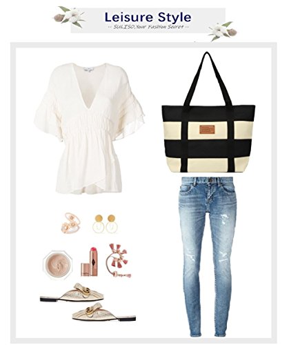 - ☀ PREMIUM MATERIAL: Made of durable premium striped canvas,with cotton lining,zipper closure