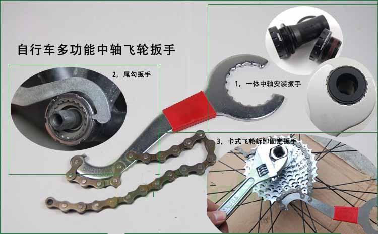 高品质一体中轴 飞轮固定扳手 尾勾扳手三合一自行车维护工具