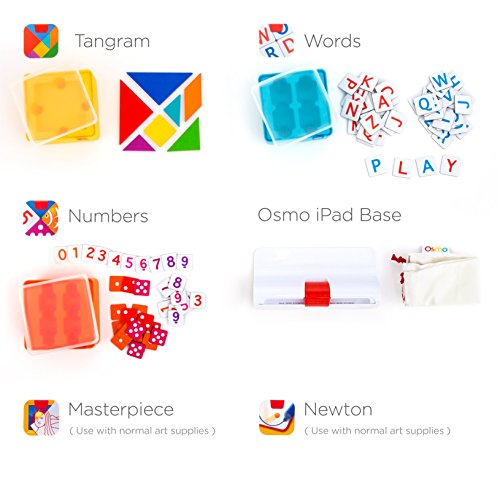 Meet Osmo, the award-winning game system that uses proprietary technology to combine play with hands-on learning. The Genius Kit includes five great games (Masterpiece, Numbers, Words, Tangram, and Newton). Kids play at drawing, math, word, and visual challenges in front of the iPad, Osmo “sees” their real-world handiwork and responds with on-screen encouragement, guidance, and giggles. Works with iPad Pro 9.7 inch, all iPad Mini, all iPad Air, all iPad 2 & up. *INCLUDES THE OSMO BASE