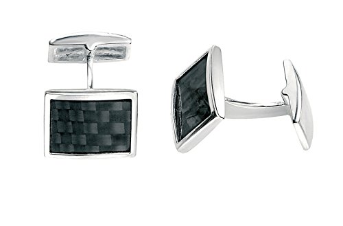 -. Title : Fred Bennett Herren-Manschettenknöpfe 925 Sterling Silber schwarz V343B Manschettenknöpfe mit schwarzer Kohlenstofffaser-Einlegearbeit