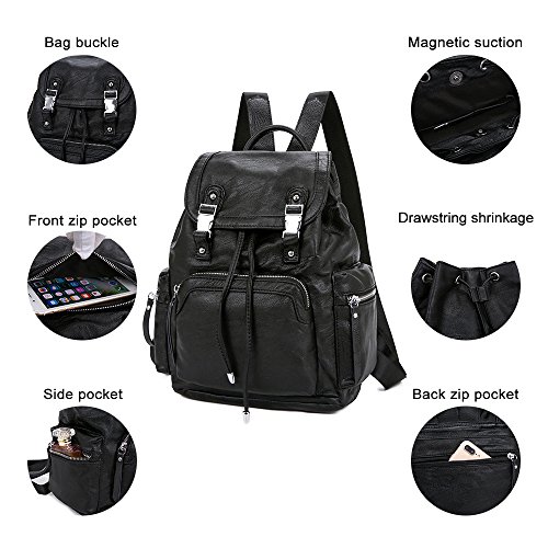 - ★ HIGH QUALITY & DURABLE MATERIAL High quality leather and inner polyester makes the backpack soft and durable.adjustable leather shoulder straps, smooth metal zippers and cotton lining. These materials feels more soft and skin-friendly.