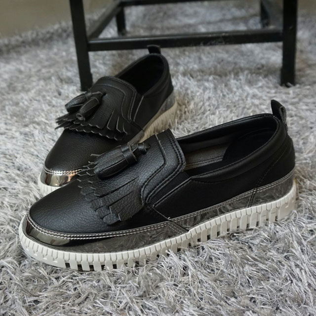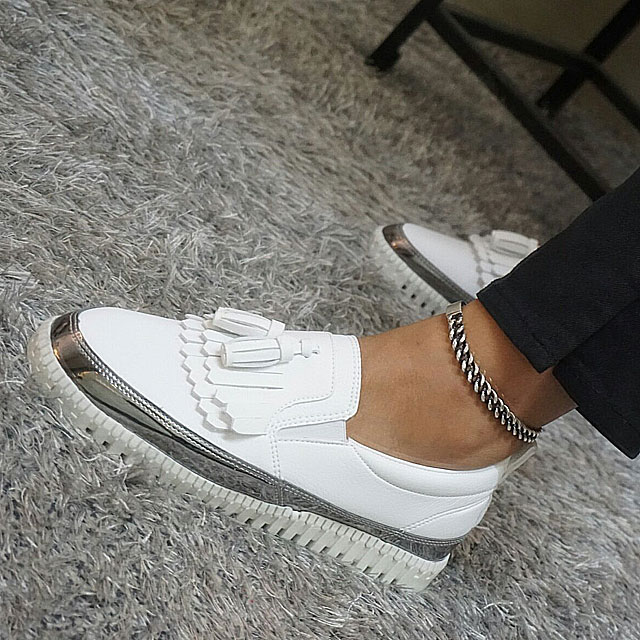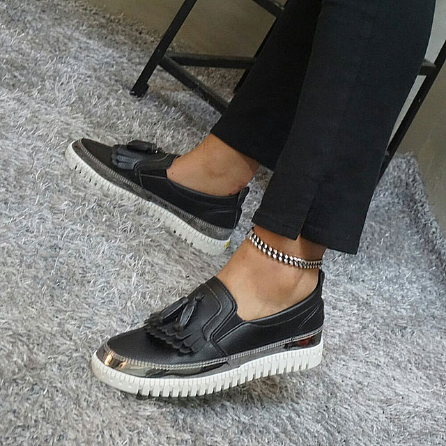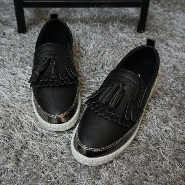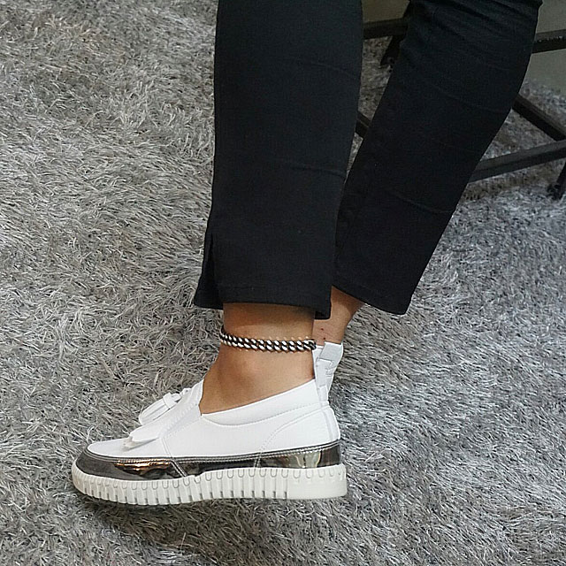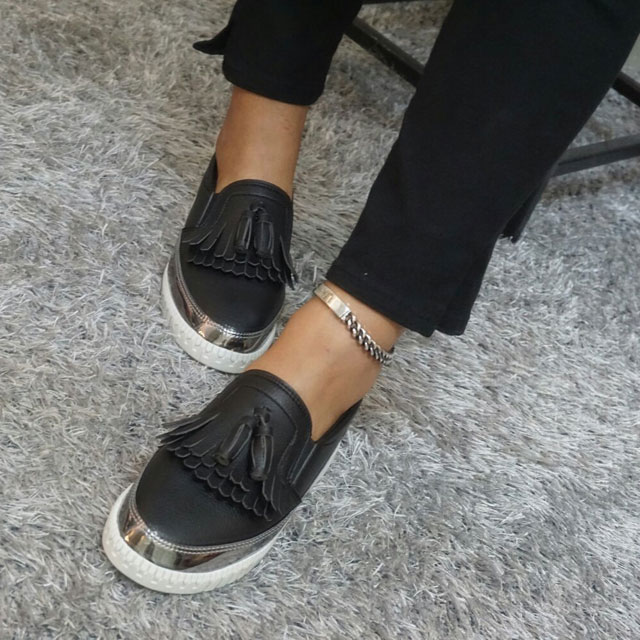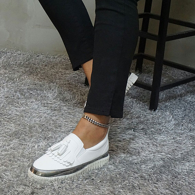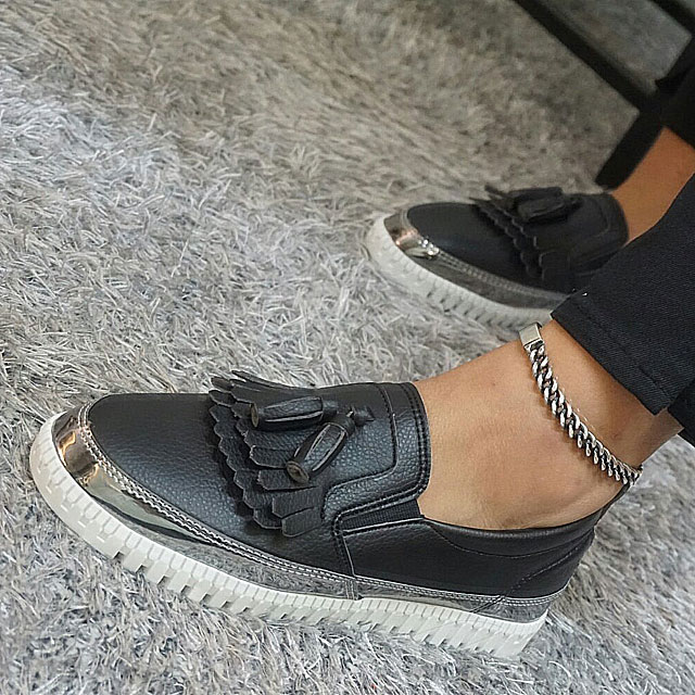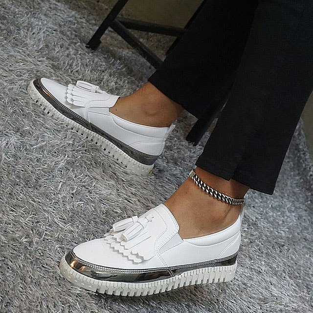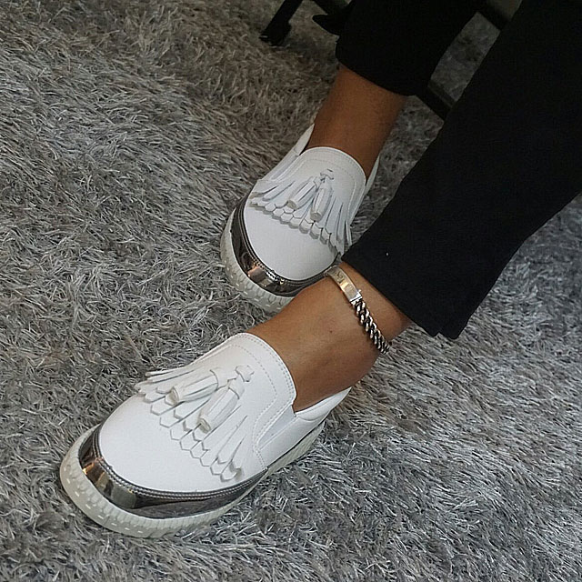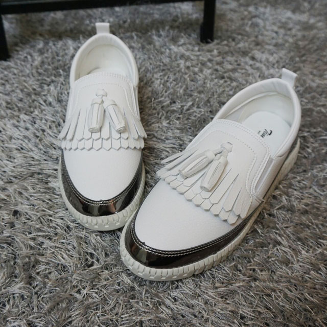 Women's leather slip-on shoes Shoes sneakers Autumnal silver tassels