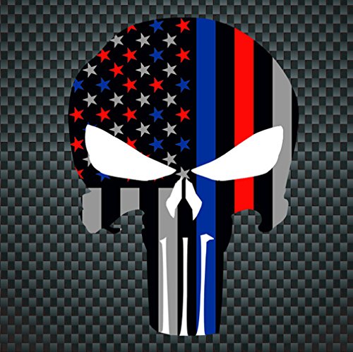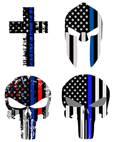 -. Title : WZT 4 Pcs Red and Blue 4x6 Inch Subdued Us Flag Punisher Skull Reflective Decal with Thin Blue Line (police and fire Support)