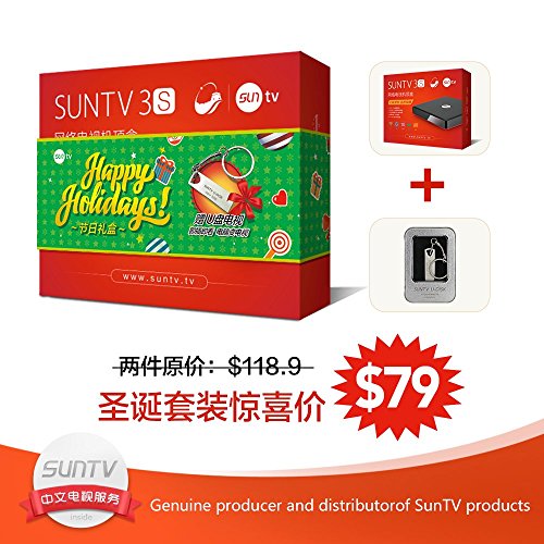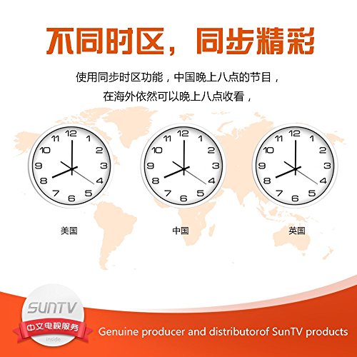 -. Feature : $79 special package includes SunTV Set Top Box and 2 year Chinese TV service subscription,U-Disk and 1 year Chinese TV service subscription / 130+ Chinese live streaming channels directly from Mainland China, including CCTV, Wei-Shi, and local TV channels. / Unique time zone shift and 7-day playback feature. You can watch 7 days of recorded programming across all the TV channels at anytime you like. / Faster and smoother. Quad Core processor, stable Internet connectivity, heat dissipation and low power usage. / 30 day Refund Policy. SunTV warrants the SunTV set-top box hardware against defects in materials and workmanship under normal use for a period of service (subscription) from the date of purchase. Automatically software updated, free-of-charge.