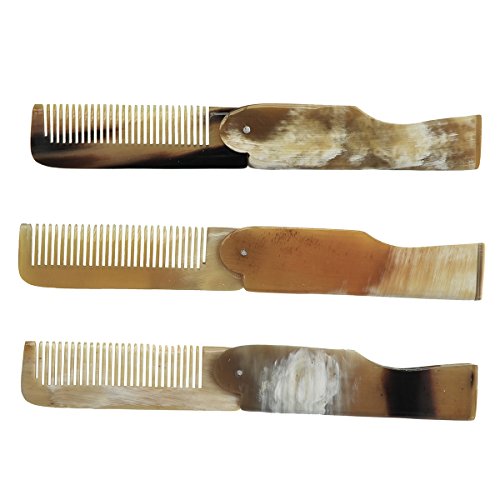 Hand carved of real horn, this comb is the best choice for your beard and is in the perfect size for on the go brushing and for travel. It is perfectly fit your wallet when being fold in. Length fold out: 16.5cm and fold in: 9.5cm. Width 2.4 cm. Thickness: 0.9cm Why should you use a horn comb ? The end of static electricity Unlike plastic combs, the horn comb does not trap electric chargesFeature