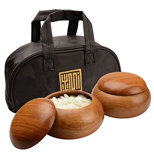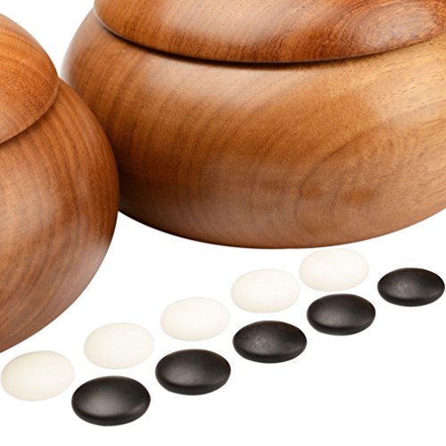 Yunzi stones; 181 black and 180 white 9.2mm (Size 33) double convex Yunzi stones included; each stone measures 9.2 millimeter tall and 21.5 millimeters wide (approximately 0.36 x 0.85 inches); Yunzi stones have a balance and a deeply rich color that are instantly noticeable; they also leave an audible ''snap'' as you place them on the board; the texture, symmetry, and precision of these stones are superior