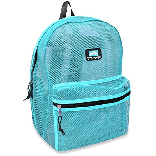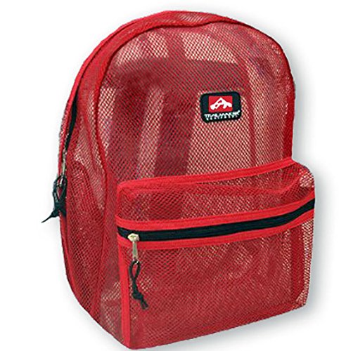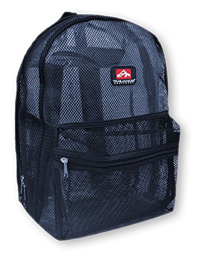 This Trailmaker mesh backpack measures 17" x 13" x 6" and is made out of high quality polyester mesh. It features padded adjustable straps, double zippered main section. Dual Zippered Compartments and a double zippered front pocket. Padded Adjustable Straps. Color: Black.Feature