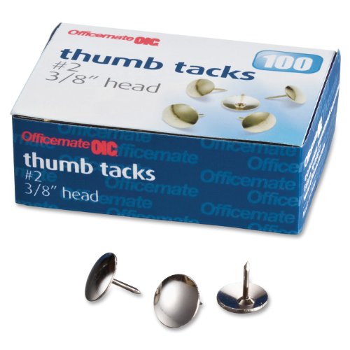 Officemate Steel Thumb Tacks, 3/8 Inch Head, Silver, Box of 100 (92912)
