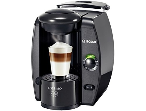 T4 anthrazit - von Bosch für tassimo produziert, ohne Bosch Kennzeichnung! Erleben Sie gemeinsame Genussmomente. Mit der TASSIMO T4 genießen Sie auf Knopfdruck Kaffee-Momente in Ihren eigenen vier Wänden. Wie bei allen unseren Kaffeemaschinen nehmen Ihnen das Selbstreinigungsprogramm und der herausnehmbare Wassertank einen Großteil der Wartungsarbeit ab. Dank INTELLIBREW?-Technologie gelingt Ihnen jederzeit die perfekte Tasse und Sie können Ihren Gästen im Handumdrehen ihr Lieblingsgetränk servieren. Einfach das gewünschte Getränk auswählen, zurücklehnen und entspannen.. Produktdetails * Große Vielfalt aus über 40 Getränken vieler beliebter Marken * Einfachste Getränkezubereitung und perfekte Getränkequalität * Patentierte T DISC Technologie: Intelligente Getränkeerkennung per Barcode; Automatische Anpassung von Getränkemenge, Brühdauer und Temperatur für den perfekten Trinkgenuss * Spülmaschinengeeignete Einzelteile * Automatisches Reinigung * Leicht zugänglicher und einfach zu befüllender XXL Wassertank - 2,0 L * Geringer Energieverbrauch - Standby-Modus direkt nach jedem Brühvorgang * Keine Aufheizdauer nach dem Einschalten * Individuelle Getränkeanpassung * Keine Geschmacksübertragung zwischen verschiedenen Getränken * Intuitives LED-Bedienfeld * UVP: 139,99 EUR Technische Details: * Leistung: 1300 Watt * Maße H x B x T (cm): 27,3 x 20,4 x 33,4 * Pumpendruck: 3,3 bar * Gewicht ca. 2,7kg * Spannung (V): 220-240 * Frequenz (Hz): 50-60 * Approbationszertifikate: VDE * Steckerart: Schuko-/Gardy.m.Erdung Lieferumfang * 1x TASSIMO T4 - Heißgetränkemaschine - anthrazitFeature