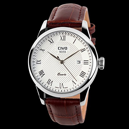 -. Title : CIVO Men's Luxury Brown Leather Band Date Calendar Wrist Watch Casual Business Waterproof Dress Watch