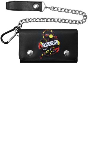 (Sourpuss)/Accessories/Wallets, Money Key Organizers/DIRECT FROM USA/Black with Anchor Tattoo "Drunk" Banner Wallet with 16" Chain from Sourpuss Clothing