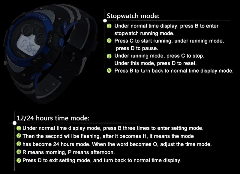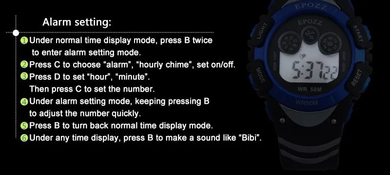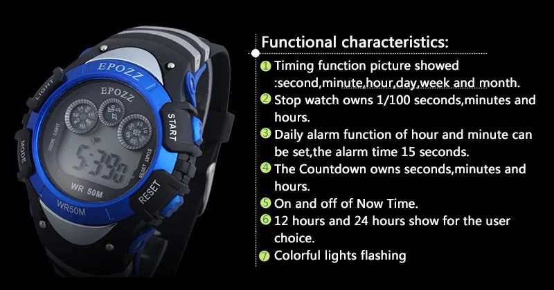 Feature:Water Resistant,Auto Date,Back Light,Alarm