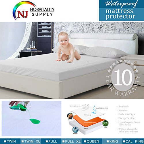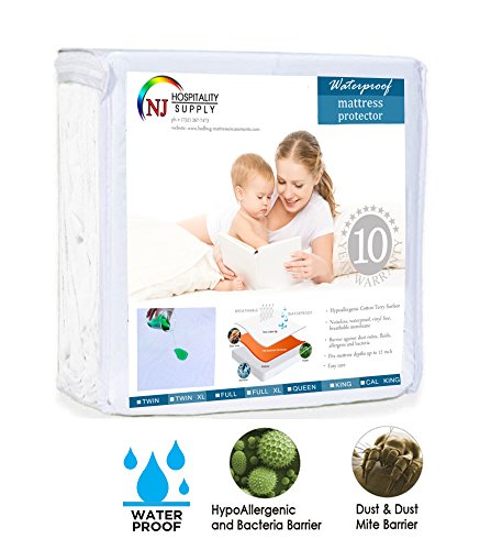 -. Feature : 100% Waterproof - Top protection against perspiration, bed wetting, liquids and stains; 10-year quality guarantee (NOTE: For six-sided protection, buy an Everest mattress Encasement). Hypoallergenic - Blocks dust mites, allergens, bacteria, mildew and mold - For ultimate allergy relief, buy together with Everest Pillow Protectors / Soft & Noiseless - 100% cotton terry surface; Keeps away moisture, keeps the feel of your mattress - Free from Vinyl/PVC/Phthalates, fire retardants and other toxic chemicals • Durable & Easy to Clean - Machine wash & dry - For frequent accidents, buy 2 or more - while one is washed, the other protects the mattress / Fitted Sheet Style; Stretchable skirt fits various depths of mattresses. Independently lab tested.