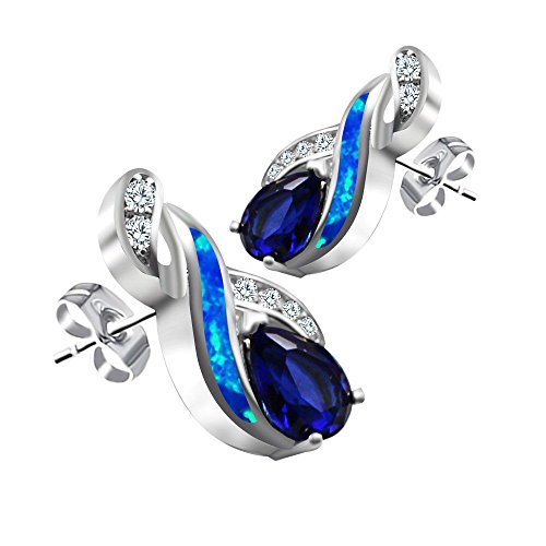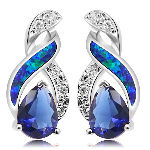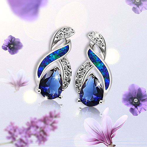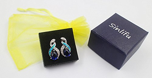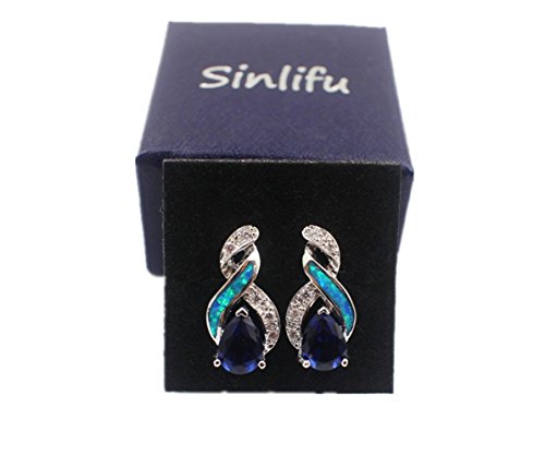 Sinlifu Silver Plated Fire Australia Opal Blue Sapphire Tanzanite Party Stud Earring (Blue)
